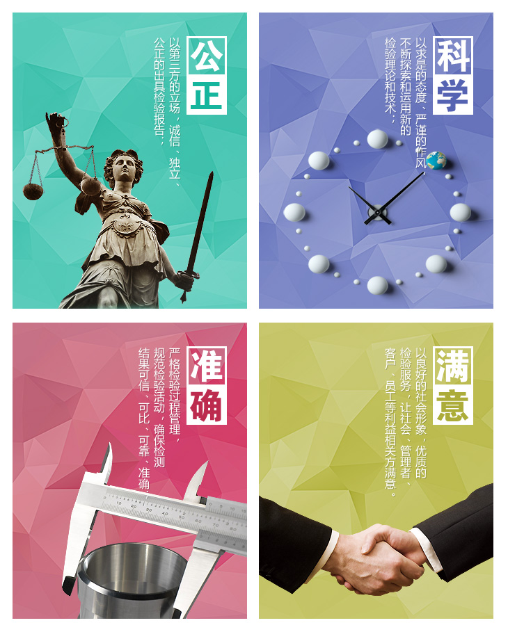• 满意——以良好的社会形象,优质的检验服务,让社会、管理者、客户、员工等利益相关方满意。